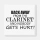 Back Away From The Clarinet and Nobody Gets Hurt! Sometimes it might be necessary to warn others to stay away from your beloved instrument. See this design on hats, tee shirts, sweatshirts, posters, stickers, and more gift items.