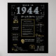 Step back into 1944 with our captivating digital poster, packed with historical tidbits, noteworthy events, and intriguing stories from yesteryear. Featuring elegant gold and silver touches set against a bold black background, adorned with unique symbols and stylish text, this poster exudes classic charm. Whether it's sparking conversations at gatherings or simply displayed as a cherished keepsake, it brings a nostalgic vibe to any space.