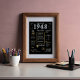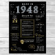 Step into 1948 with our captivating digital poster, brimming with historical nuggets, notable happenings, and captivating tales from the past. Adorned with elegant gold and silver accents against a striking black backdrop, embellished with distinct symbols and chic text, this poster radiates timeless allure. Whether igniting conversations at gatherings or simply cherished as a memento, it evokes a nostalgic ambiance in any setting.