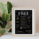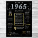Step back into 1965 with our captivating digital birthday poster, brimming with historical facts, noteworthy events, and intriguing stories from the past. Adorned with elegant gold and silver details against a bold black background, featuring unique symbols and stylish text, this birthday poster exudes timeless charm. Whether sparking conversations at birthday gatherings or cherished as a keepsake, it evokes nostalgic memories.