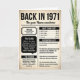 Celebrate a birthday with a nostalgic look back at 1971 — the year it all began. This personalized birthday card features fun facts and highlights from 1971, including 70s slang, what was in style, and cost-of-living facts, all presented in a clean, timeless design.