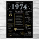 Transport yourself back to 1974 with our captivating digital birthday poster, rich with historical facts, noteworthy events, and intriguing stories from the past. Decorated with elegant gold and silver accents set against a striking black backdrop, adorned with unique symbols and stylish text, this birthday poster emanates timeless charm. Whether igniting conversations at birthday gatherings or cherished as a memento, it invokes nostalgic reminiscences.