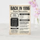 Celebrate a birthday with a nostalgic look back at 1996 — the year it all began. This personalized birthday card features fun facts and highlights from 1996, including '90s slang, '90s fashion trends, and cost-of-living facts, all presented in a clean, timeless design.