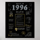 Step back into 1996 with our captivating digital birthday poster, brimming with historical facts, significant events, and enchanting narratives from the past. Adorned with elegant gold and silver accents against a striking black backdrop, this birthday poster exudes timeless charm.