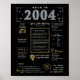 Take a journey back to 2004 with our captivating digital birthday poster, teeming with historical facts, significant events, and captivating narratives from the past. Adorned with elegant gold and silver accents against a striking black backdrop, this birthday poster radiates timeless charm.