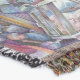 A quality printed throw has its advantages. This is a much finer weave throw than its loopier cousins, and though lighter, it is worth the investment for custom room accessorizing. The back is much prettier than the typical brown, and the fringe on the long sides very vivid, the selvage nicely done. Before photographing, I washed the throw in cold water, delicate, with a thicker woven throw the same size. On tumble dry low, this throw was dry in half the time as the other. This is a very practical quality if you use throws for furniture covers or to wrap up in frequently. The sleekness of the fabric makes it a great layer for accenting or protecting without the feeling of sitting on too much stuff. Perfect for napping or when you feel a light chill coming on. The color printing is beautiful and on this fabric, matched the design and color of my Photoshop image. This is an advantage for blending room fabrics and colors. The fringe on the short sides prints the colors from the design image and therefore varies from the side fringe. I streaked a white fractal line through the plaid pattern to give the illusion of weaving. This printed as crisp as an illusory thread, and put some white in the short side fringe, showing another advantage of print vs loomed- for artistic purposes, line lines, detail, and color integrity can be planned and preserved. My loomed throws have color limitations and more of a needlepoint texture. Print throws reproduce an exact image. The throw felt a little stiff straight out of the package, but this went away in the first delicate wash. Of course I searched the wash water for ink or bleeding and there was none.