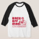 I bought the Men's Basic 3/4 Sleeve Raglan T-Shirt, White/Navy. It arrived on time for a gift and is of a great quality and fits perfectly! So cute! Zazzle has done it again! The printing was clear and filled in solidly.