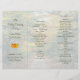 Scenic Fall season photography of a tree-lined back road makes up the background of this wedding program to be folded in thirds. Dark green template text is easy to change and customize for your ceremony. It will open like an accordion with all printing - images and text - on ONE SIDE ONLY. Choose any type of paper.