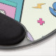 The plastic backing is nice and sturdy. The grippy pads underneath keep the mouse pad where I put it on my table. The pad the mouse sits on is cut well to fit the backing. The wrist pad is perfectly soft, supportive, and thick. I'm left-handed, and this mouse pad works just as well for me as it does for my right-handed friends. I'm the designer of HippieClecticHope products. I'm blown away by how well my intricate fractals turn out on the tangible items in the Zazzle Marketplace. This particular mouse pad ***appears*** like a 3D object... A mathematically-engineered rainbow black opal, inlaid under transparent fabric...