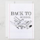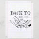 Back to School motif in childish doodle with school utensils on writing pad background.