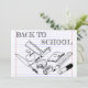 Back to School motif in childish doodle with school utensils on writing pad background.