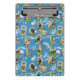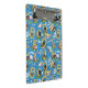 Capital letters A B C D E F G H I J...house pets and school tools against a blue sky repeat pattern
