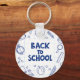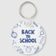 Carry a cheerful reminder of school with this keychain featuring a bold, handwritten-style “BACK TO SCHOOL” text block framed by hand-drawn doodle icons of school essentials. Dark blue icons include a backpack, pencil, ruler, paper airplane, alarm clock, open book, beaker, apple, basketball, magnifying glass, and paint palette on a white grid background. Perfect for students, teachers, and classroom use.