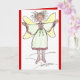 greeting card, cover has a whimsical angel drawing, and inside: EXPECT MIRACLES! ... dark red background / matching postage available