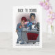 A card with a funny cartoon about back-to-school shopping supplies. Background and text can be personalized. Original artwork by DB Cartoons.