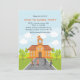 A great back to school invitation for grade school children. The card features a stately school building and four children heading towards the door.