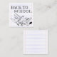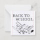 Back to School motif in childish doodle with school utensils on writing pad background.
