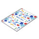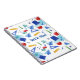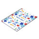 A vibrant, animated scene unfolds as a colorful notebook with a whimsical 'Back to School' design comes into view. The camera performs a gentle zoom in, highlighting the playful illustrations of paper airplanes, apples, and school supplies. As the focus sharpens, the background subtly shifts, revealing a cheerful classroom setting filled with sunlight streaming through the windows. The mood is lively and inviting, with a bright color palette of reds, blues, and greens, evoking a sense of excitement for the new school year.