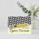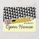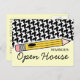 A postcard featuring a design on front consisting of houndstooth and a yellow pencil. Text reads "REMINDER: Open House." Personalize the back with details of your event.