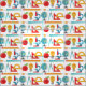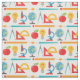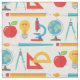A colorful school pattern featuring pencil, paint brush, apple, globe of the world, lightbulb, microscope and more.