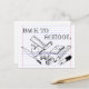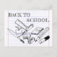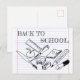 Back to School motif in childish doodle with school utensils on writing pad background.