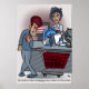 A poster with a funny cartoon about back-to-school shopping supplies. Background and text can be personalized. Original artwork by DB Cartoons.