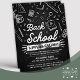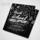Promote your back to school supplies giveaway with this creative flyer featuring black and white chalkboard background, white school supplies and star illustrations, chalk streak & cursive "Back to School" typography. Customize template to your liking.