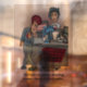 A window cling with a funny cartoon about back-to-school shopping supplies. Background and text can be personalized. Original artwork by DB Cartoons.