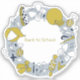 Fun and sweet kid's little things are ready for school year! Colorful stickers for school bag, scrapbooking, letters, home work, as Thank you notes and more. The design features little school things - cap, bag, watch, candy, bow, tie, musical symbol and note, apple and cherry in olive green and white - as border on light blue background, and a white writing area. You can personalize the template text by adding your teacher's or kid's name or note for a special gift or celebration!