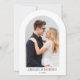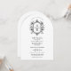 Back, white floral crest monogram arched wedding invitation