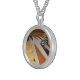 I chose gold plated so that the metal would not react with my skin oils and perspiration. But, I changed the necklace from the gold plated one to a sterling silver. My skin cells will tarnish the silver. But it will not look as bad if some portion of the gold plated necklace somehow became compromised. Zazzle did a find job turning the picture into a pendant for me. As you can see, the colors and the printing of the final product, match the preview. The picture I took is not very clear. But I am pleased with the product I received.