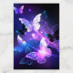 Black background with glowing night butterflies. Night butterflies. Design with butterflies.