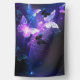 Black background with glowing night butterflies. Night butterflies. Design with butterflies.