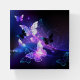 Black background with glowing night butterflies. Night butterflies. Design with butterflies.