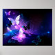 Black background with glowing night butterflies. Night butterflies. Design with butterflies.