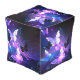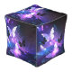 Black background with glowing night butterflies. Night butterflies. Design with butterflies.