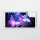 Black background with glowing night butterflies. Night butterflies. Design with butterflies.