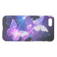 Black background with glowing night butterflies. Night butterflies. Design with butterflies.