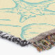A quality printed throw has its advantages. This is a much finer weave throw than its loopier cousins, and though lighter, it is worth the investment for custom room accessorizing. The back is much prettier than the typical brown, and the fringe on the long sides very vivid, the selvage nicely done. Before photographing, I washed the throw in cold water, delicate, with a thicker woven throw the same size. On tumble dry low, this throw was dry in half the time as the other. This is a very practical quality if you use throws for furniture covers or to wrap up in frequently. The sleekness of the fabric makes it a great layer for accenting or protecting without the feeling of sitting on too much stuff. Perfect for napping or when you feel a light chill coming on. The color printing is beautiful and on this fabric, matched the design and color of my Photoshop image. This is an advantage for blending room fabrics and colors. The fringe on the short sides prints the colors from the design image and therefore varies from the side fringe. I streaked a white fractal line through the plaid pattern to give the illusion of weaving. This printed as crisp as an illusory thread, and put some white in the short side fringe, showing another advantage of print vs loomed- for artistic purposes, line lines, detail, and color integrity can be planned and preserved. My loomed throws have color limitations and more of a needlepoint texture. Print throws reproduce an exact image. The throw felt a little stiff straight out of the package, but this went away in the first delicate wash. Of course I searched the wash water for ink or bleeding and there was none.