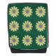 Flowers in crochet. Afghan pattern of daisy in yellows, gray and hunter green, is replicated in three rows of three.