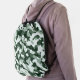 This drawstring backpack is shown with a green camo print.