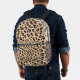 Backpack in a digital textile print in a textured leopard pattern - leopard spots in black, accented with rust, on a caramel tan background