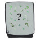 Question Marks or other character. Personalize with any keyboard character. Start with a question mark. A large central character in black is surrounded by four slightly smaller characters, and ten even smaller characters are jumbled around the central letter and show in various shades of green. Background is currently a medium gray, may be changed.