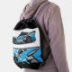 This drawstring backpack is shown with a auto race car print.