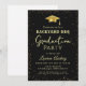 Celebrate your graduate’s big achievement with this stylish Backyard BBQ Graduation Party Invitation featuring an elegant gold and navy design with a graduation cap icon.