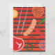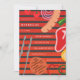 This is a fun and unique barbecue party invitation perfect for a birthday party, 4th of July celebration, Labor Day and backyard BBQ. The invitation features a barbecue grill with a number of items that are commonly found at barbecues such as sausages, cherry tomatoes, burger patty, steak, onion rings, corn, peppers/capsicum and a pair tongs.
