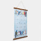backyard birds 2025 wall calendar - illustration by Sarah Knight featuring a cedar waxwing, eastern bluebird, tree swallow, dark eyed junco, white breasted nuthatch, goldfinch, cardinal, red winged blackbird, grackle, chickadee, red breasted grosbeak, purple martin, indigo bunting, American redstart, tufted titmouse, and mourning dove on a cloudy sky blue sky.