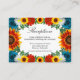 Elegant and colorful floral design for a backyard summer event. Features teal blue roses, white daisies, red wildflowers and sunflowers