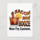 BACON and BOOZE! Now I'm Content. A humorous illustration of a Bacon Garnished Cocktail from The Martini Diva. Perfect for any event, party or happy hour celebration. Great for bourbon, scotch and whiskey drinkers. Oh, and not too bad for bacon lovers either.
