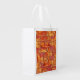 I own a lot of reusable grocery bags, but this one holds its box shape and simply stands up on its own even if there is nothing in it. Its stiffer than your regular reusable bag too, and the material is water resistant. I poured water on the exterior and it didn't penetrate inside to the other side. I'm buying a couple more. Wish I knew how durable these bags were or I would have purchased a few more with my initial order. I also like how it folds and buttons up when not in use, making it easy to put into a handbag or luggage. I haven't used this bag yet, as I purchased it for travel use, like when you're at the airport and need to small sturdy bag to place any airport purchases in, like food, souvenirs etc. I can tell you when you first see this bag, it looks very cheap, but after closer inspection of the material and the seams its a very sturdy reusable bag. I tested it out by putting some really heavy objects inside and I could not observe any stress to the bag at all. Another thing I like about it, is the fact the medium size that this is makes it easy to just carry it in your hand without the bottom of the bag scraping the ground, like most other bags do when you're short. That alone, deserves 5 stars. I just wish there were more colors to choose from! The PDX Airport Carpet printing looks just like the photo, and using this bag during travel might be a conversation piece when/if a native from Oregon happens to see it.